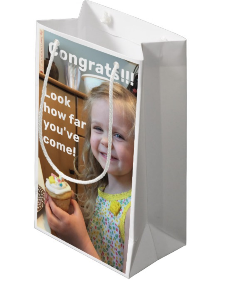 Find a funny photo of the grad from childhood and upload it for a fun, super-personal gift bag! They will love how personal your gift is!