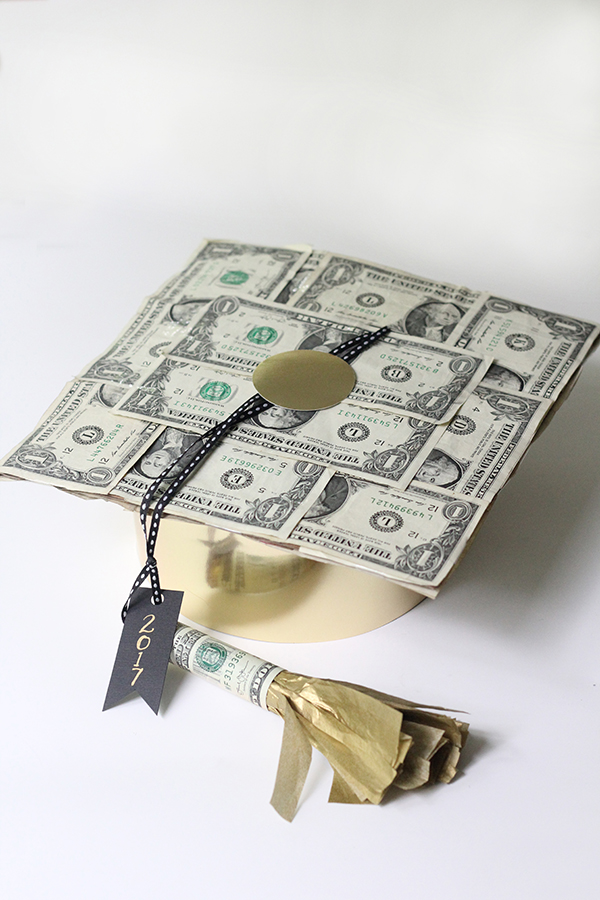 Celebrate graduation with the perfect replica of the day’s symbol—a cash graduation cap. We love the detailed step by steps in this how-to. Pair it with a bag that says “Go Change the World,” and include piles of quarters in the bag!