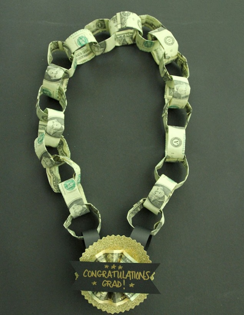 Every kid loves a medal! This money chain is a super fun way to award a grad for their hard work. Pair it with a gift bag with their photo that says “You’re a real winner!”